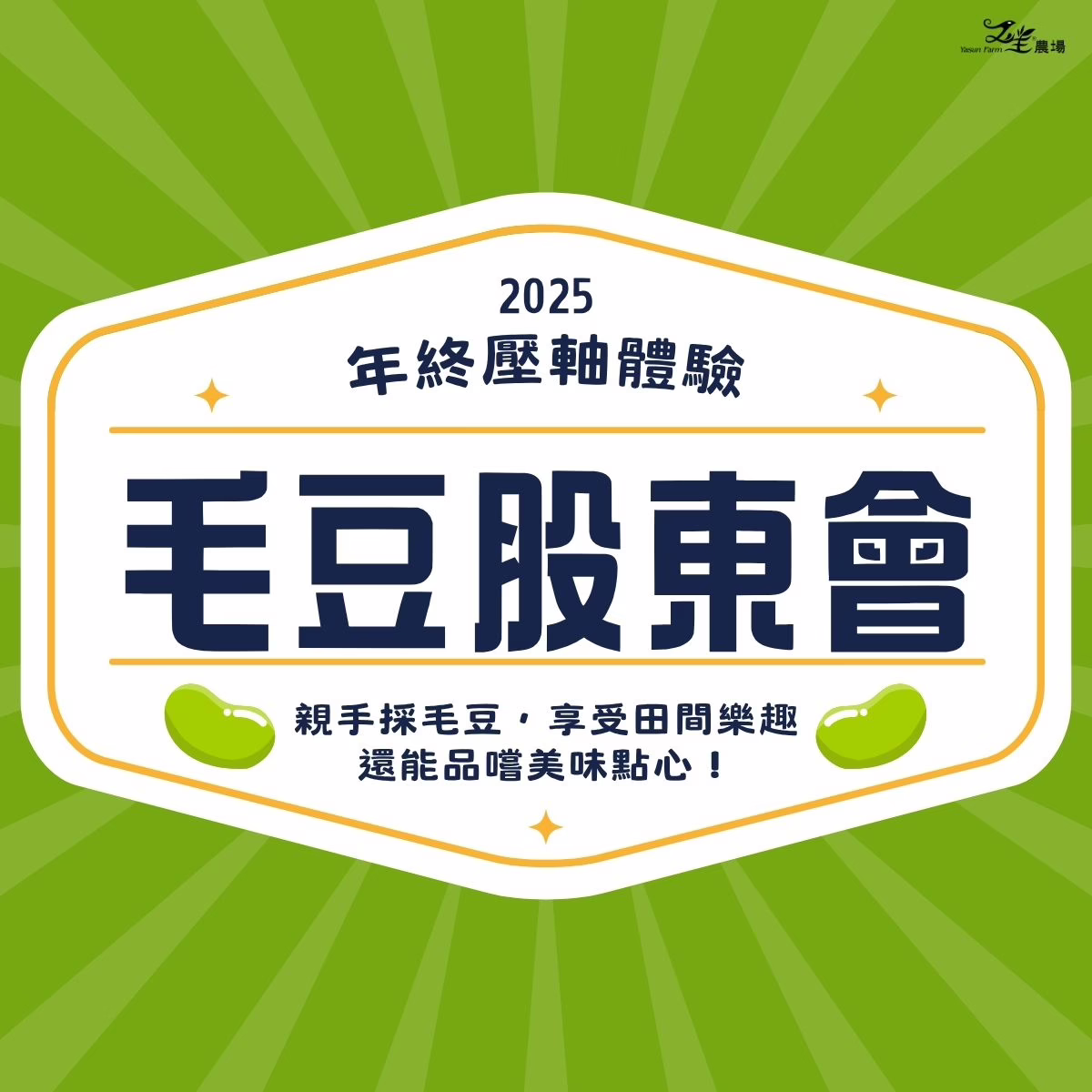 首頁 體驗活動 體驗|毛豆股東會 體驗|毛豆股東會NT$800 \美濃秋冬盛會|召開毛豆股東會/ 「2025年終壓軸體驗」 親手採毛豆,享受田間樂趣 還能品嚐美味點心! 【活動費用】 800元 可認購 1股 每股約可採收 20台斤 的毛豆(建議人數5-7人/股) 上次的盛況歷歷在目 小編說的是… 一邊唱歌 一邊採毛豆 一邊享受客家點心 的部分啦❤️ 活動梯次(點選下方選單) 12/28 (日) 上午場12/28 (日) 下午場01/10 (六)上午場01/10 (六) 下午場請選取一個選項12/28 (日) 上午場12/28 (日) 下午場01/10 (六)上午場01/10 (六) 下午場清除 體驗|毛豆股東會 數量 加入購物車 貨號: 12/28毛豆活動 分類: 體驗活動 標籤: 體驗活動 描述 額外資訊 注意事項 種植的氣候、田區因素,皆可能減產或增產。認養的股份,需於開園當日,一次採拔完畢。如開園當天,股東本人無法到達採收,主辦可接受股東指定代理人現場採收(需於開園前3日告知並提醒代理人攜帶身分證件,供現場確認),但不得更換田區及採收時間;若仍無法參與採收,則視同放棄。園區將劃分地塊,如經發現採拔他人地塊作物,需負損害賠償責任。 活動梯次(點選下方選單) 12/28 (日) 上午場12/28 (日) 下午場01/10 (六)上午場01/10 (六) 下午場請選取一個選項12/28 (日) 上午場12/28 (日) 下午場01/10 (六)上午場01/10 (六) 下午場清除 體驗|毛豆股東會 數量 加入購物車 活動梯次(點選下方選單) 12/28 (日) 上午場, 12/28 (日) 下午場, 01/10 (六)上午場, 01/10 (六) 下午場 相關商品 特價 體驗|破解番茄密碼:食農偵探出動 NT$1,180 原始價格:NT$1,180。NT$990目前價格:NT$990。 加入購物車 體驗|白玉蘿蔔豐收會 NT$150 選擇規格 此產品有多種款式。 可在產品頁面選擇選項
